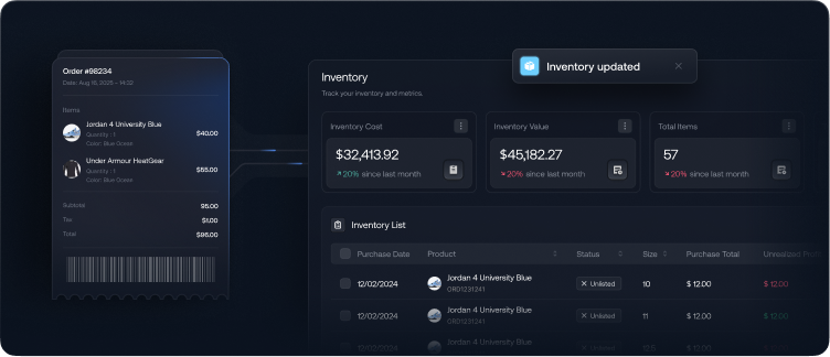 Always know what’s in stock. Stay in control with live updates that keep your inventory accurate, effortless, and ready to scale.